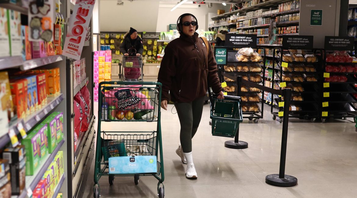 People shop at a Whole Foods store on Feb. 3, 2025 in New York City. Michael M. Santiago | Getty Images Consumers grew dramatically more worried about near-term inflation as President Donald Trump pushed aggressive tariffs against major U.S. trading partners, a closely watched survey showed Friday. The University...