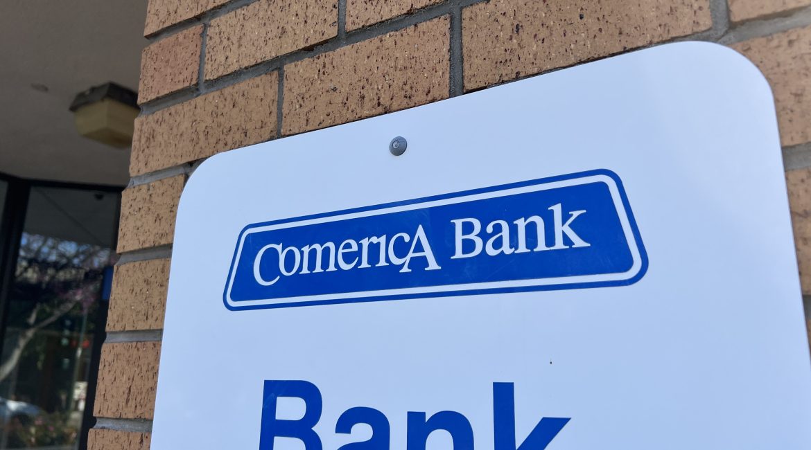 A Comerica Bank sign on a building in Walnut Creek, California, March 30, 2023.