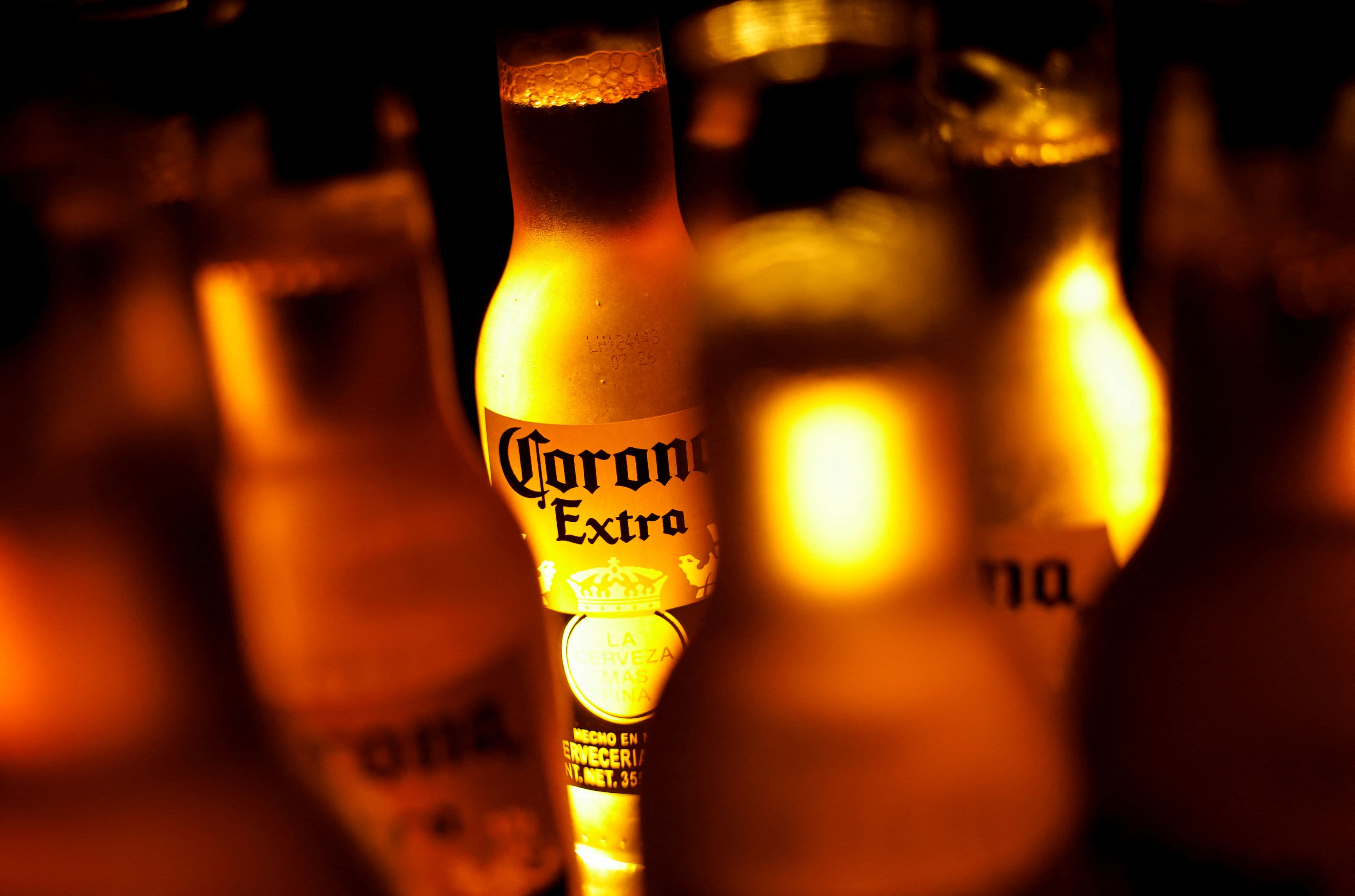 Bottles of Corona beer, the flagship brand of Grupo Modelo are displayed in this illustration taken in Monterrey, Mexico, February 18, 2025.